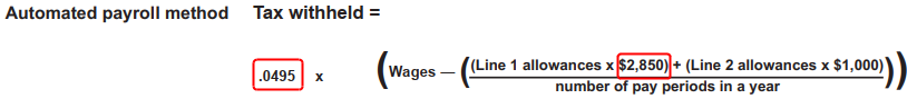 - Dependent exemption: Enter the amount for one qualifying dependent exemption (Line 2 allowances).