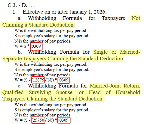 The LA "Income Tax Withholding Tables" were redesigned via a Declaration of Emergency dated 12/19/2024. At first glance, it looks very confusing. However, there are only two pieces of information you will need to create the tax table in PowerChurch Plus. The instructions and figures below will show you what you need to know. Figure 1 shows an excerpt from those instructions.
