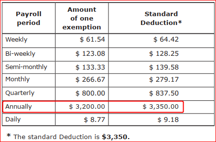 - Withholding allowance: Enter the annual amount for one exemption.