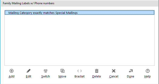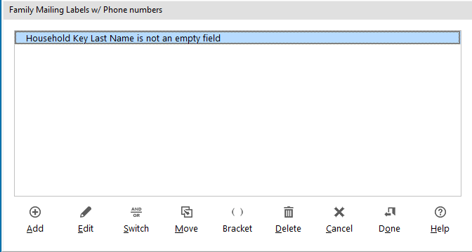 - The 3rd step is to build a filter that decides which families appear in the output. In this example, we will provide two options, labels for all families and labels for specific families based on a mailing category.