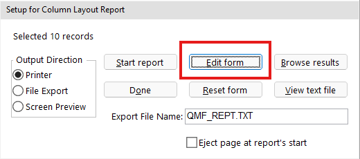 - At this point, click on Run Query. PowerChurch Plus will display a screen titled Setup for Column Layout Report. Click on Edit Form.