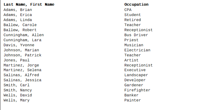 - Now click Run Query and then Start Report to see your results. This will generate a list of names and their corresponding occupations. The above filter could be customized to any of the personal profile custom notes fields.
