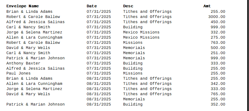 This example lists individuals who made a single donation of over $250 to a Contribution Fund. It shows how to create a filter that consists of more than one condition. It also shows how to edit the report form to remove duplicate names. As usual, you can refer to previous examples for details on creating a query.