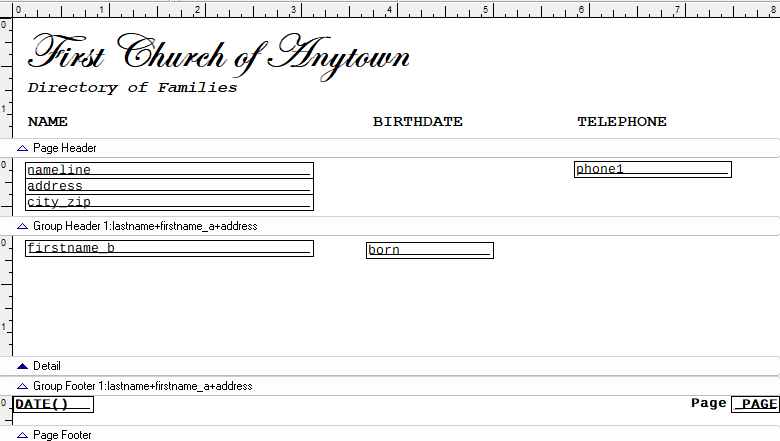 - Optionally you may want to create a line in the group footer section to split up families. Repeat the 19a step to accomplish this.